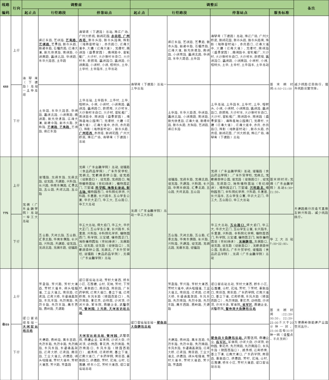 为进一步优化公交线网布局,根据道路施工等情况,广州市交通运输部门经研究,自2025年6月7日起,调整公共汽车268、347、468、775、夜69路等线路和暂停运营459路,调整公共汽车五羊邨站等站点及相关线路,其中临时调整项目待施工结束后恢复原址运作。