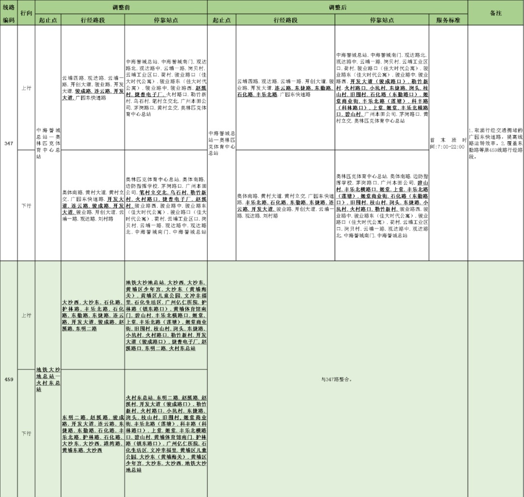 公共汽车347等线路调整设置情况表